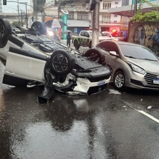 MANAUS Veículo capota depois que condutora perde controle na Joaquim Nabuco sob chuva intensa 0 16 de fevereiro de 2026