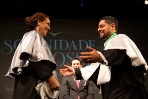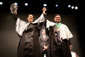 “Para mim é emocionante estar participando dessa festa, dessa solenidade da nossa comunidade, da querida UEA. Eu tenho uma admiração pela UEA profunda. Primeiro porque ela tem políticas afirmativas que impactam. São políticas afirmativas de coragem e que, realmente, trazem resultados de levar ensino superior não somente para a capital, mas, sobretudo, para o interior”, declarou Jeibson Justiniano.