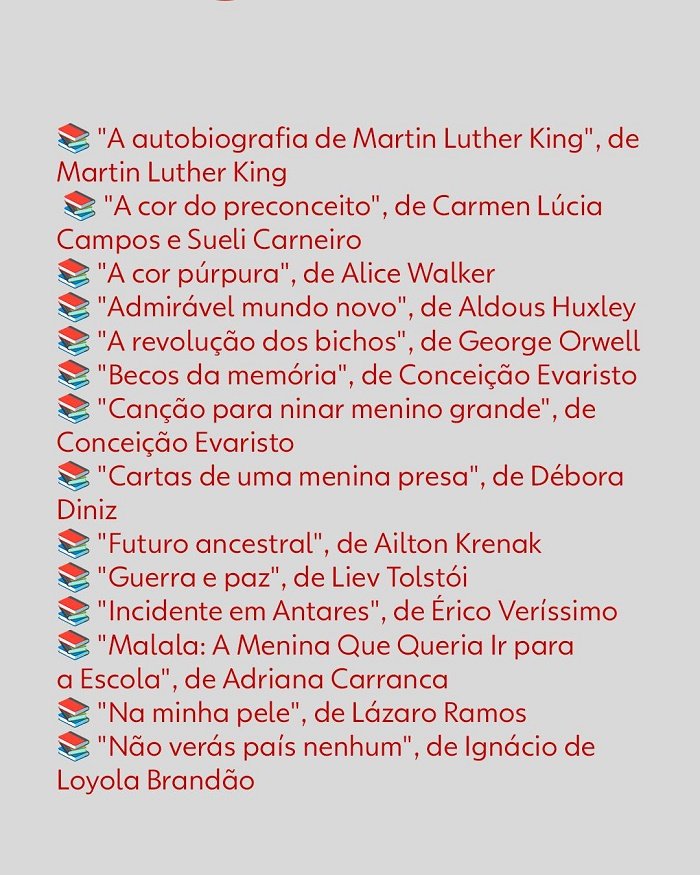 A aplicação da remição exige que o livro conste na lista oficial elaborada pela Secretaria de Educação do Distrito Federal (SEDF). A relação reúne obras selecionadas por professores de português que atuam especificamente na política de remição. São vetados títulos que incentivem qualquer forma de violência ou discriminação. Entre os temas presentes na lista estão democracia, ditadura, racismo, distopias políticas e questões de gênero.