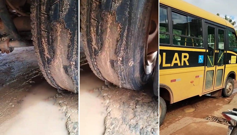 Na gravação, um pai alerta para o risco iminente de acidente, isentando o motorista de responsabilidade e atribuindo a situação à falta de manutenção por parte do poder público. Moradores relatam que o problema não é pontual e envolve falhas recorrentes tanto no transporte escolar quanto na conservação das vias, o que pode resultar em responsabilização administrativa em caso de acidentes.