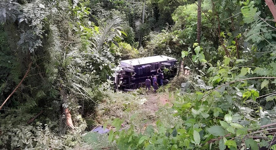 De acordo com informações preliminares, o veículo havia sido estacionado em um posto de combustíveis nas proximidades, mas o motorista teria esquecido de acionar o freio de mão. Sem o travamento, o caminhão se movimentou sozinho, desceu o terreno e acabou caindo no barranco.