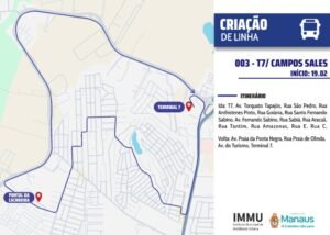 A novidade é a implementação da linha 003, a partir desta quinta. Ela fará a conexão direta entre o Terminal 7 (T7) e o bairro Campos Sales. A linha percorre vias importantes como a Avenida Torquato Tapajós e atendendo o Pontal da Cachoeira.