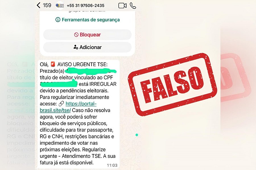 As mensagens, frequentemente enviadas via WhatsApp, informam supostas pendências eleitorais e ameaçam com sanções, como bloqueio de serviços públicos e restrições administrativas. O objetivo é induzir a vítima ao pânico e levá-la a clicar em links fraudulentos.