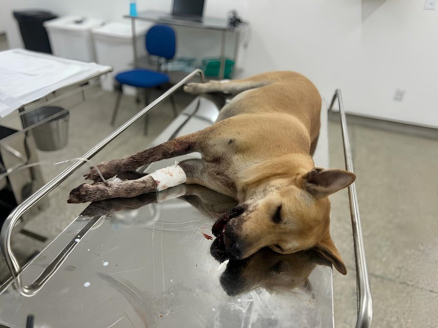 A cadela foi resgatada e encaminhada para atendimento veterinário e passará por cirurgia, nesta sexta-feira, no Hospital Público Veterinário do Amazonas, onde recebe acompanhamento especializado da equipe técnica.