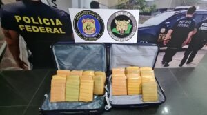 Durante a análise das malas no raio-x, os agentes identificaram imagens suspeitas, com grande concentração de material orgânico embalado em formato semelhante ao de tabletes. Diante do indício, as bagagens foram abertas para uma verificação mais detalhada.