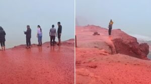 A Red Beach, localizada na Ilha de Hormuz, no Irã, tem chamado a atenção de turistas, fotógrafos e pesquisadores por um fenômeno natural incomum: o mar adquire uma coloração vermelha intensa, criando um cenário que impressiona pelas cores vibrantes e pelo contraste com a paisagem ao redor.