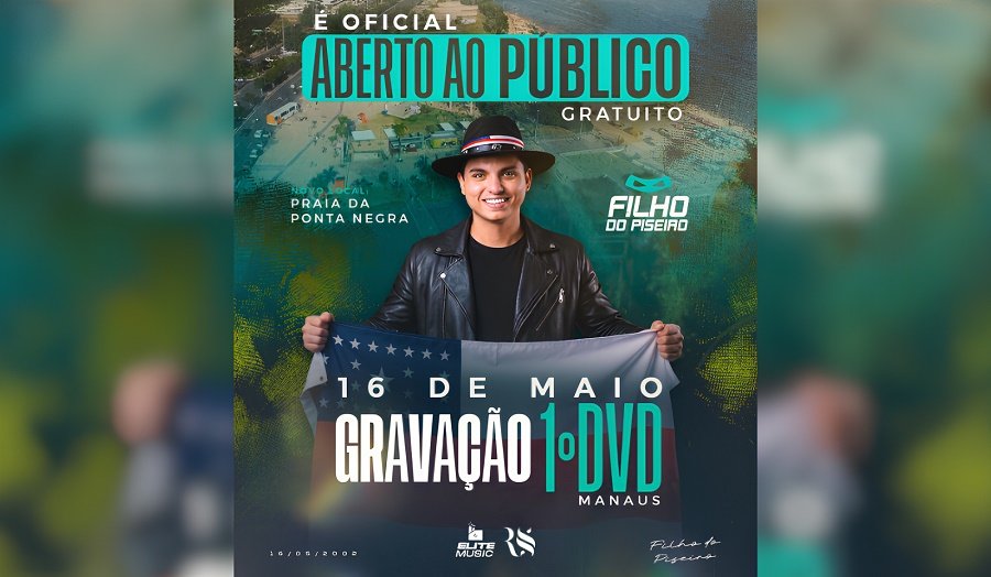 O cantor amazonense Everton da Silva, conhecido como Filho do Piseiro, anunciou nesta quarta-feira (8) a gravação de seu primeiro DVD em um show gratuito na Praia da Ponta Negra, na zona oeste de Manaus.