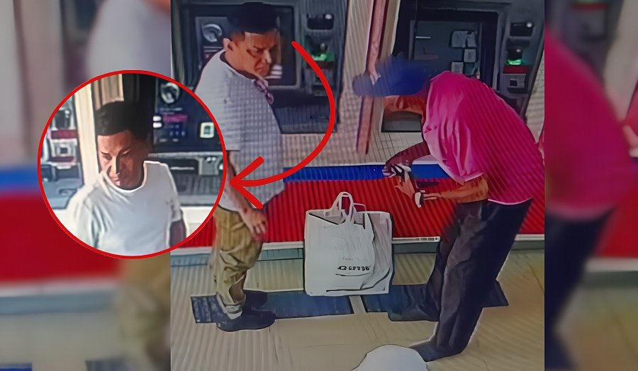 Nas imagens, um homem ainda não identificado se aproxima da vítima ao perceber dificuldades no uso do caixa eletrônico. Com atitude aparentemente prestativa, o suspeito passa a orientar o idoso durante a operação, simulando auxílio na retirada de dinheiro.