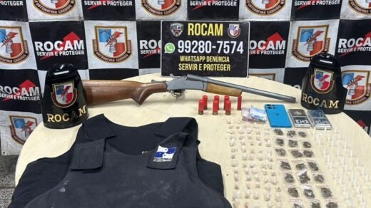Durante as diligências, o suspeito tentou fugir, mas foi capturado. Com ele, os PMs apreenderam uma arma de fogo de fabricação caseira, calibre 28, uma porção de cocaína e R$347,00 em espécie.
