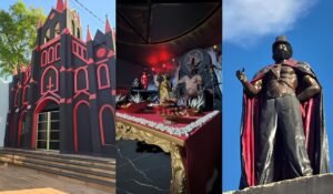 Uma construção incomum tem despertado a curiosidade de motoristas e moradores no município de Itatiaia, no Rio de Janeiro. Localizada às margens da Rodovia Presidente Dutra, no bairro Vila Esperança, a chamada igreja luciferiana chama atenção pelas cores preta e vermelha e pela arquitetura diferenciada.