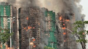 De acordo com o Corpo de Bombeiros, diversas pessoas permaneciam presas dentro dos edifícios em chamas, embora o número exato não tenha sido divulgado. Dezenas de caminhões de bombeiros e ambulâncias foram enviados ao complexo, localizado no distrito de Tai Po, no norte do território autônomo chinês.