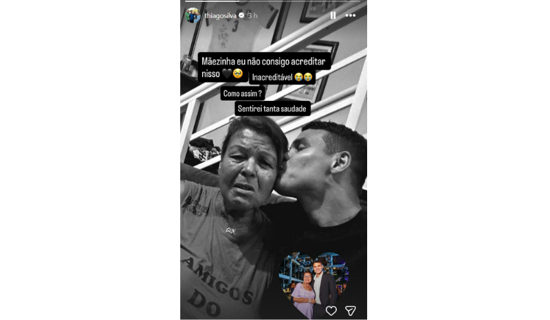 O zagueiro também se manifestou nas redes sociais para se despedir da mãe. Em uma mensagem emocionada, o jogador afirmou que ainda tenta acreditar na notícia e ressaltou a saudade que já sente.
