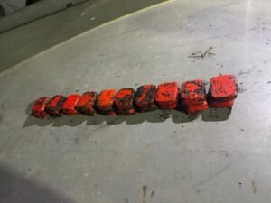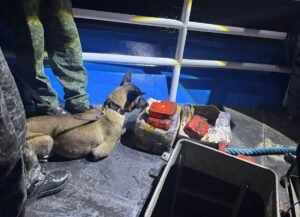 Durante os procedimentos, o cão policial Delta sinalizou para um compartimento na proa do barco. Nas buscas, a equipe encontrou, no interior de duas caixas de papelão, cerca de 20 tabletes de entorpecente.