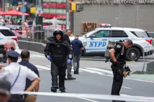 A Times Square, um dos pontos turísticos mais movimentados de Manhattan, foi esvaziada nesta segunda-feira (18) após uma ameaça de bomba. O Departamento de Polícia de Nova York orientou moradores e turistas a evitarem a região da Rua 43 Oeste com a 7ª Avenida enquanto a ocorrência era investigada.
