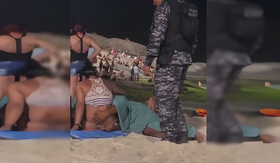 Uma testemunha que registrava a cena comenta: “Olha só o que está acontecendo ali. Gente, olha essa praia! Lotada”