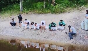 Na comunidade Bela Vista do Jaraqui, a atividade resultou na soltura de 232 tracajás. O monitoramento é realizado há oito anos de forma voluntária pelas famílias locais e contou com a participação de estudantes da Escola Municipal Divino Espírito Santo.