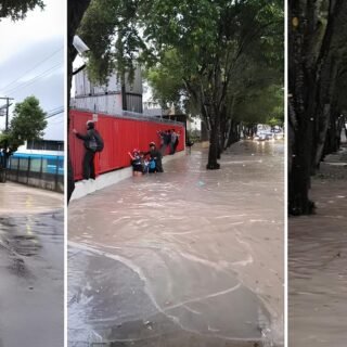 MANAUS “É um Balneário?”: alagamento após chuva faz pedestres se pendurarem em grades em Manaus 0 2 de fevereiro de 2026