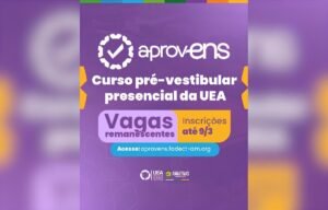 Estão abertas, desde quinta-feira (26/2) até 9 de março de 2026, as inscrições e matrículas para as vagas remanescentes do AprovENs 2026, curso pré-vestibular presencial oficial da Universidade do Estado do Amazonas (UEA). Em seu terceiro ano de realização, o programa consolida-se como uma das principais alternativas de preparação para estudantes, trabalhadores e demais candidatos que desejam ingressar na instituição por meio do Vestibular tradicional ou do Sistema de Ingresso Seriado (SIS). Ao todo, são ofertadas 113 vagas remanescentes, distribuídas entre os níveis SIS 1, SIS 2, SIS 3 Plus – novidade deste ciclo – e Macro.