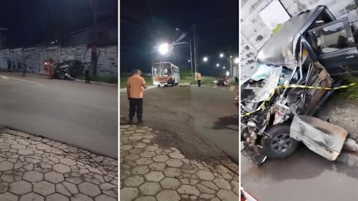 Um grave acidente de trânsito ocorrido nesta quarta-feira (16) na rotatória conhecida como Bola da Gillette, na avenida Abiurana, bairro Distrito Industrial, deixou o condutor de uma motocicleta e seu passageiro feridos. O impacto envolveu uma motocicleta e um carro pertencente a uma empresa, cuja lateral ficou parcialmente destruída.
