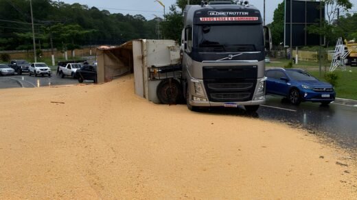Imagens divulgadas em aplicativos de mensagem mostram o veículo capotado na pista, em um trecho de curva da rodovia. A cena chamou a atenção de condutores que trafegavam pelo local no momento do ocorrido.