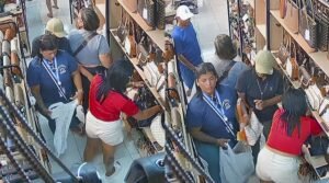 Câmeras de vigilância flagraram a ação de um grupo especializado em furtos a estabelecimentos comerciais no Centro de Manaus. Conhecida como “gang da bolsa”, a quadrilha é composta por cinco mulheres e um homem e atua de forma organizada para enganar funcionários das lojas.