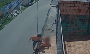 Em outro momento é possível ver o homem com uma faca ameaçando a jovem que se joga na calçada e entrega o celular para ele. Durante a ação, a mãe da vítima grita: “Socorro, deixa a minha filha, moço”.