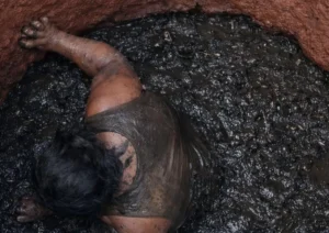 Um vídeo divulgado nas redes sociais mostra a mulher dentro da fossa