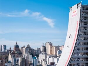 Aos 50 anos, o hexacampeão mundial conhecido como Mineirinho realizou o maior drop da história em evento promovido pela Red Bull na fachada do CAFF