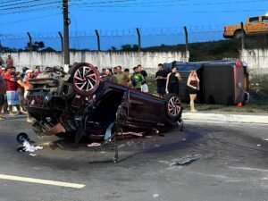 Um grave acidente envolvendo três veículos deixou duas pessoas mortas e ao menos sete feridas na tarde deste domingo (16), na avenida do Turismo, zona oeste de Manaus. A colisão ocorreu no sentido Centro-bairro e provocou intenso congestionamento, já que os veículos capotados permaneceram na via até a conclusão dos trabalhos periciais.