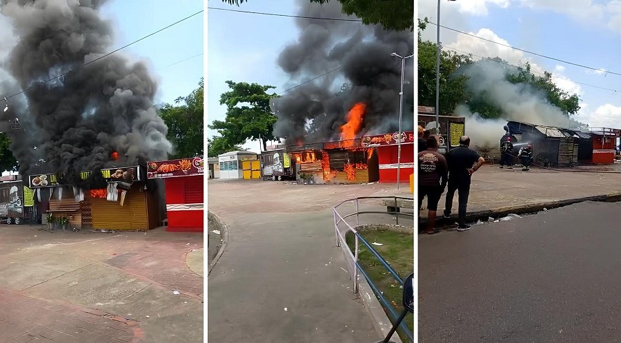 Logo após o início do incêndio, o Corpo de Bombeiros Militar do Amazonas foi acionado e chegou ao local para conter o fogo. A atuação rápida das equipes evitou que as chamas se propagassem para outros boxes instalados na área.