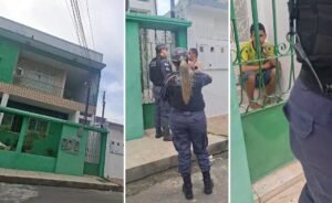 Vídeos que circulam em aplicativos de mensagem mostram o momento em que policiais conversam com o homem, que estava no pátio da casa no momento da abordagem. Em outra gravação, uma das moradoras aparece próxima ao suspeito enquanto aguarda a chegada da equipe policial.